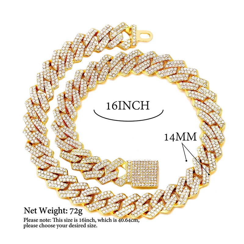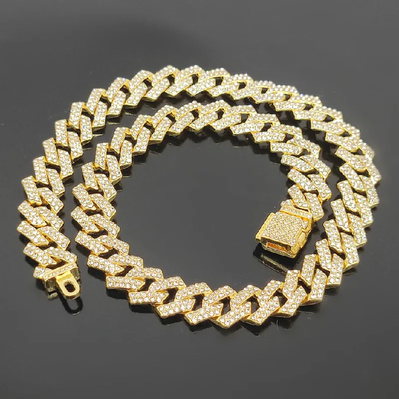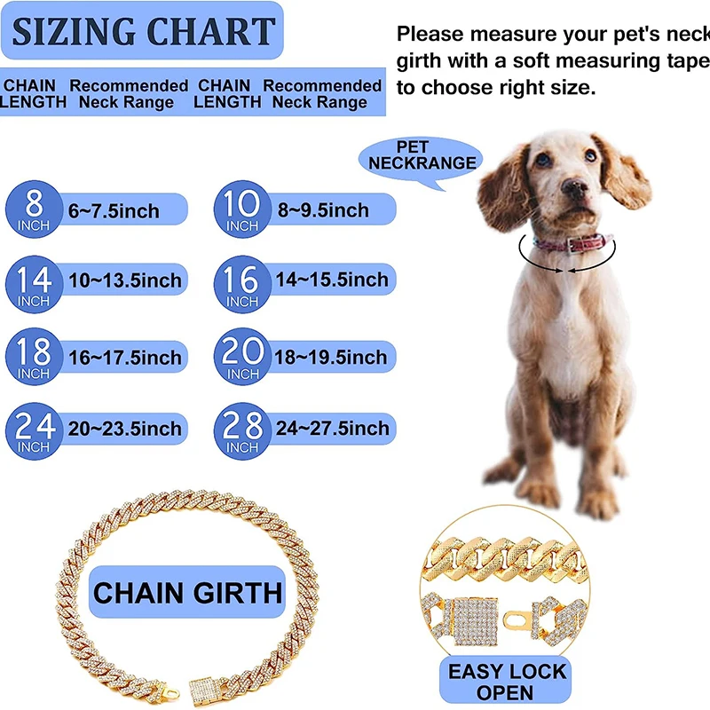Metal Dog Chain Diamond Cuban Link Gold Dog Collar with Secure Buckle Jewelry Accessories Dog Collars for All Breeds Dogs Cats