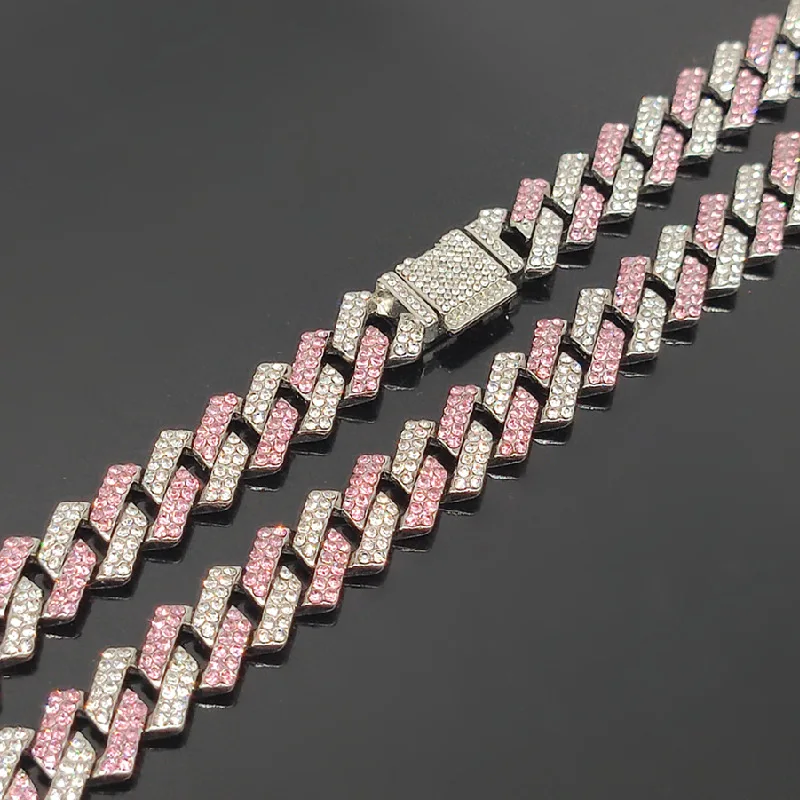 Metal Dog Chain Diamond Cuban Link with Secure Buckle Dog Collars for All Breeds Dogs Cats